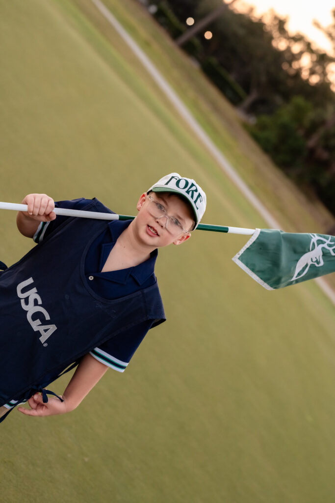 We started with strong, composed portraits around the golf cart, capturing that confident, almost editorial energy. The kids leaned into their roles effortlessly, holding clubs with serious expressions that made the images feel elevated but still fun. Their Baldwin golf towel and subtle USGA details added personality without distracting from the connection between them.